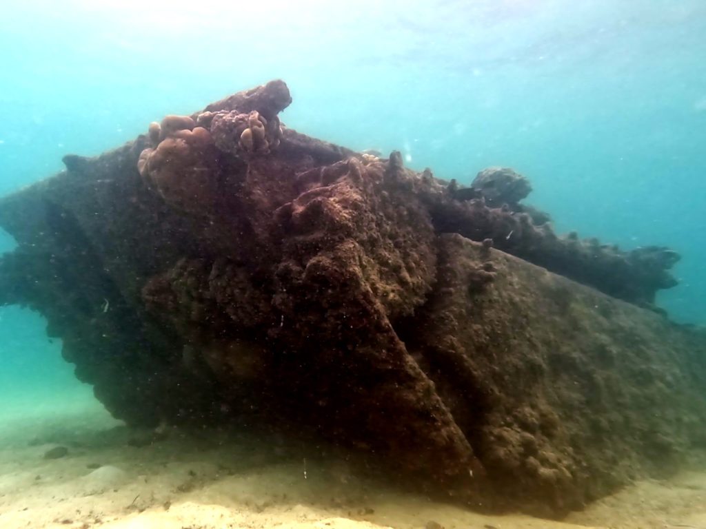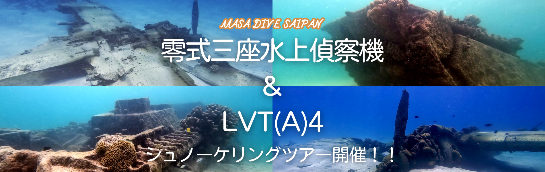 サイパン西側 マニャガハ島の近く 水深約3~4mに米軍のLVT(A)4が沈んでいます。
