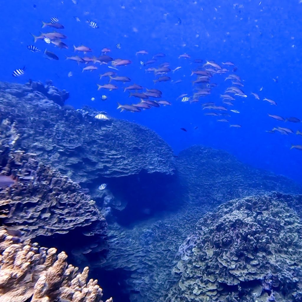 大きな美しいサンゴの山とカラフルな熱帯魚がみられ またウミガメのすみかにもなっています。